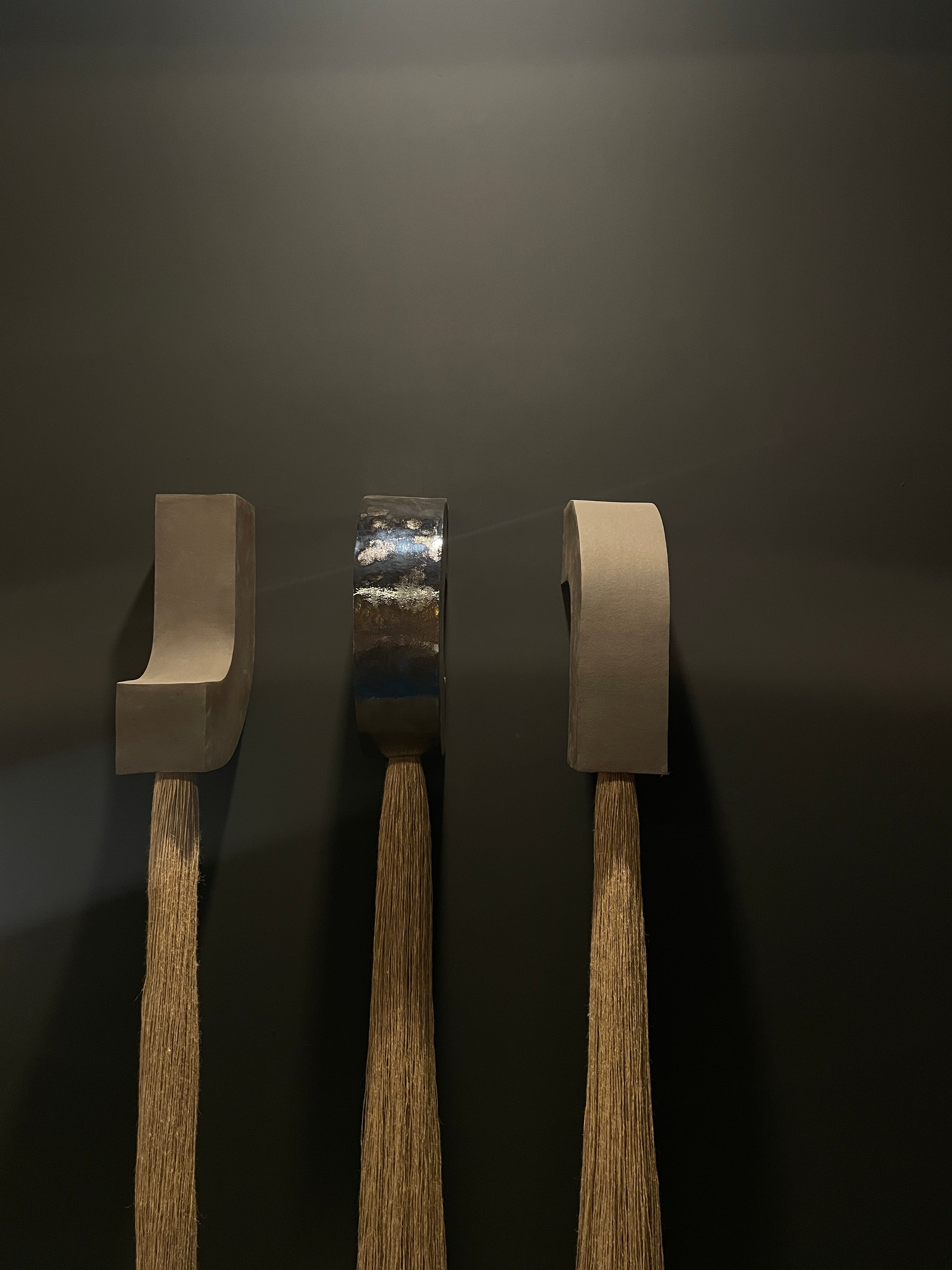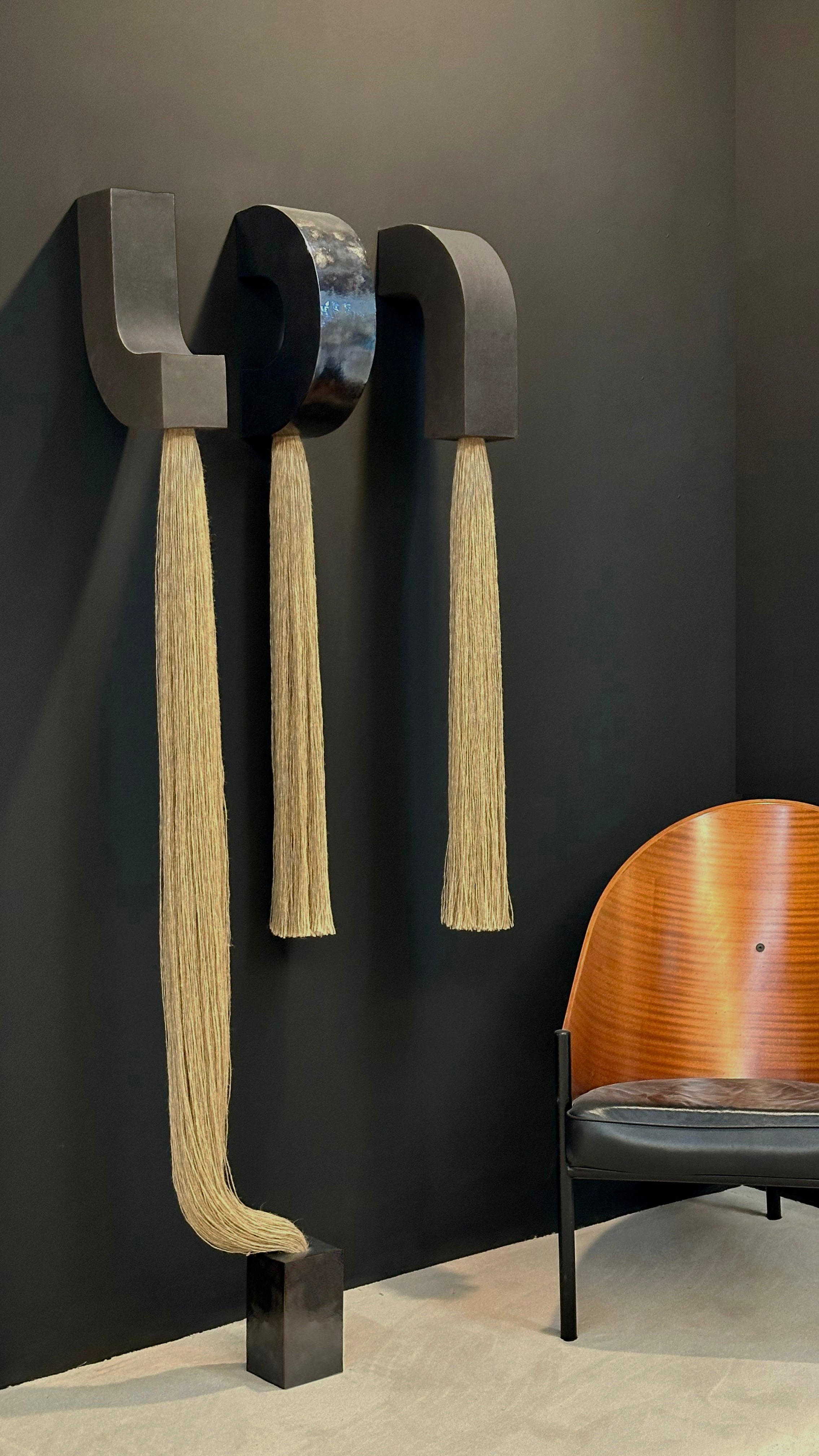 The result was TRIADE, a set of three wall pieces, created in black stoneware, glazed and unglazed. The set is a tritych, three pieces as one, emerging from the wall.
