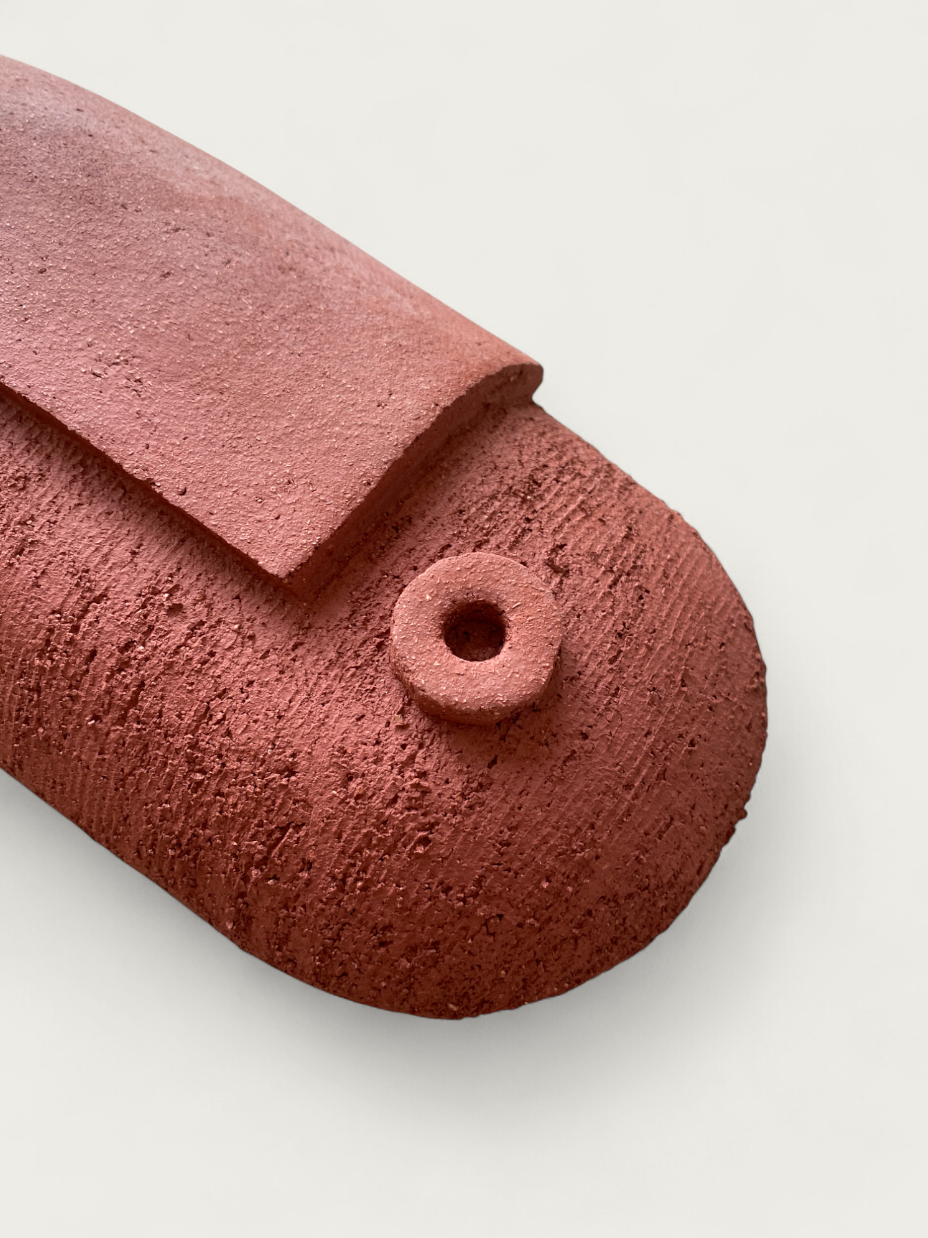 The earthy red stoneware clay creates unique and captivating pieces, lending them a grounded and natural quality. The combination of different textures highlights each feature, adding depth and dimension to the mask.